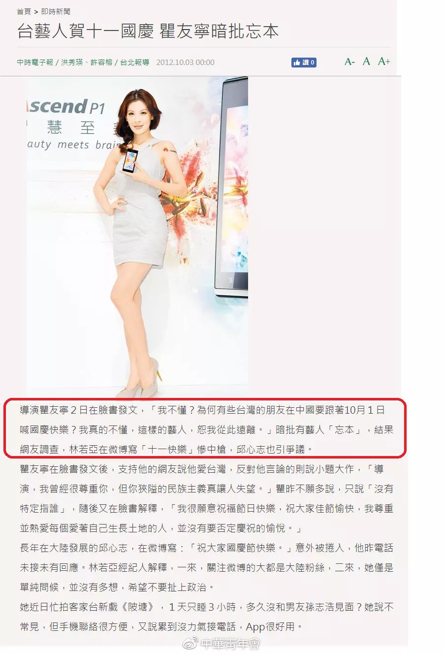 事件4:批评其他台湾演员在10月1日喊“国庆快乐”