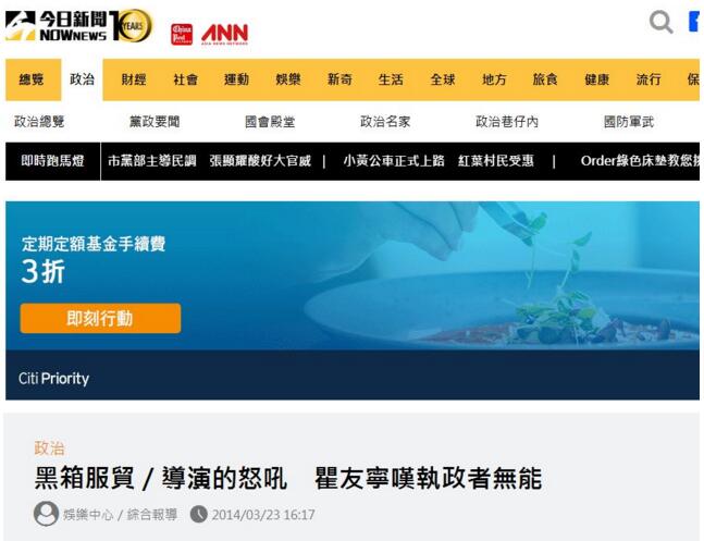 但很快,瞿友宁又被媒体曝光为“太阳花学运”头目陈为廷站台。