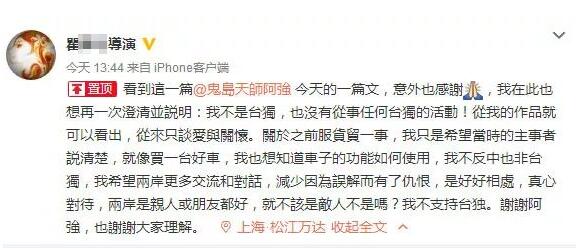 原标题:台湾导演急了:我不是“台独”!原来他的新剧今晚就在大陆播!
