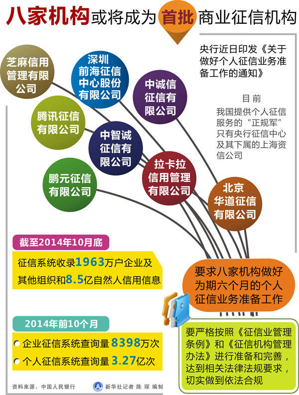 三年前,人行曾通知芝麻信用等8家機構做好個人徵信業務的準備工作,準備期6個月。首批獲得試點資格的8家公司,既包括BAT系,也包括金融機構。