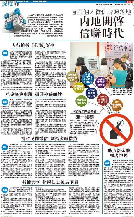 評級機構穆迪則表示,「信聯」將為非銀行消費金融參與者如P2P網貸平台等目標客戶機構填補消費者信貸記錄的信息缺口。此舉對發放個人貸款的銀行和消費金融資產支持證券 (ABS) 具有正面信用影響,原因是百行徵信將使用非銀行消費者行為數據作為其個人徵信信息來源,銀行和資產證券化交易發起人可以藉此完善貸前審批、結構設計和貸後監測,從而提升其個人貸款資產組合質量。