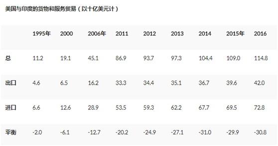 美国此举的本质原因无非是美中之间巨大的贸易逆差,而美印之间的贸易也存在着逆差,虽然总体数额没有中美之间那么巨大,但总体趋势呈上升趋势,并且印度也是被美国列入的十大贸易逆差国之一。根据美国贸易代表办公室的数据:印度是美国2016年第九大进口商品进口国。该年与印度进行的美国商品和服务贸易总额估计为1148亿美元。出口额为420亿美元进口额为728亿美元。2016年美国与印度的商品和服务贸易逆差为308亿美元。