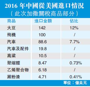 【香港商報网訊】美國公布301調查項下對華擬徵稅商品清單后幾個小時,中國即推出力度前所未有的對等反制措施。中國商務部昨日發布公告,公布擬對美國產大豆、汽車、飛機等進口商品對等采取加徵關稅措施的商品清單,稅率為25%,涉及2017年中國自美國進口金額約500億美元。