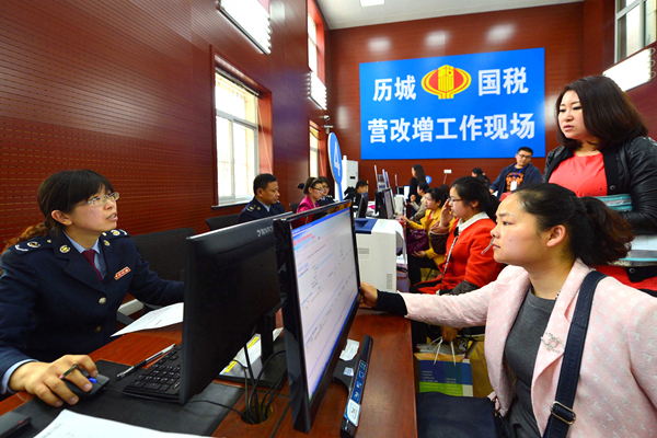 分析指出,此次增值稅調整,直接利好制造業企業,特別是高端制造與科技創新企業。圖為內地企業在稅務部門進行營改增登記。資料圖片