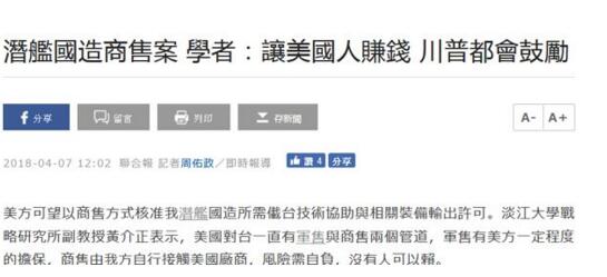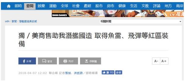 但是,台湾《联合报》及其报系下属驻美媒体《世界日报》7日共同发出一则“大独家”——美国对台湾出售潜艇零部件的限制出现松动!美方一位熟悉台海军事的人士6日向该报记者透露,美方近日将以“商售管道”,对台湾输出“潜舰国造”所需技术协助。