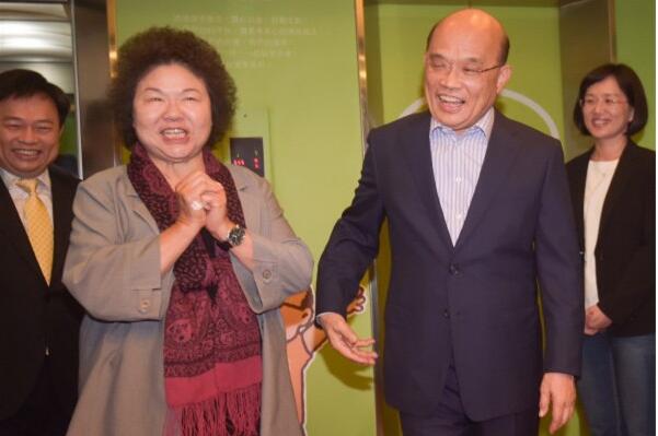 9日,陈菊拜会苏贞昌,劝进其参选新北市长。(台媒)