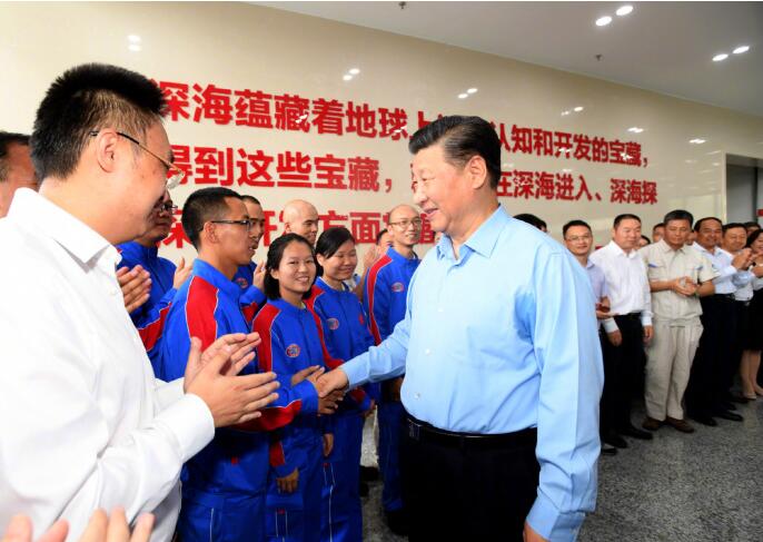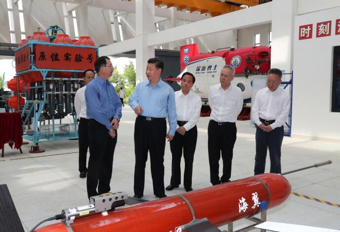 4月12日下午,习近平总书记来到位于海南三亚的中国科学院深海科学与工程研究所,仔细察看“海翼”号深海滑翔机、“天涯”深渊着陆器等设备,并同“深海勇士”号载人潜水器设计师和深潜团队亲切交谈。