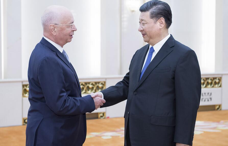 4月16日,国家主席习近平在北京人民大会堂会见世界经济论坛主席施瓦布。 新华社