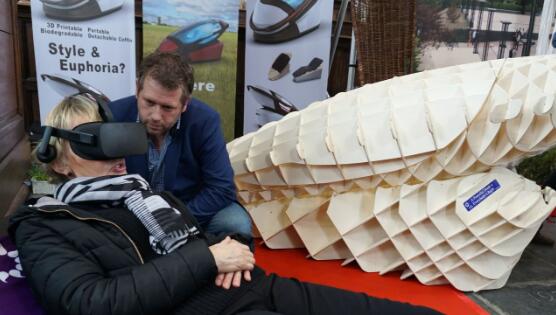 近日,荷兰阿姆斯特丹,人们在阿姆斯特丹葬礼博览会上通过虚拟现实技术体验“自杀胶囊机”。据英国《每日邮报》报道,这款3D打印“自杀胶囊机”由支持安乐死的澳大利亚医生尼奇克和荷兰设计师班尼克联合研发。