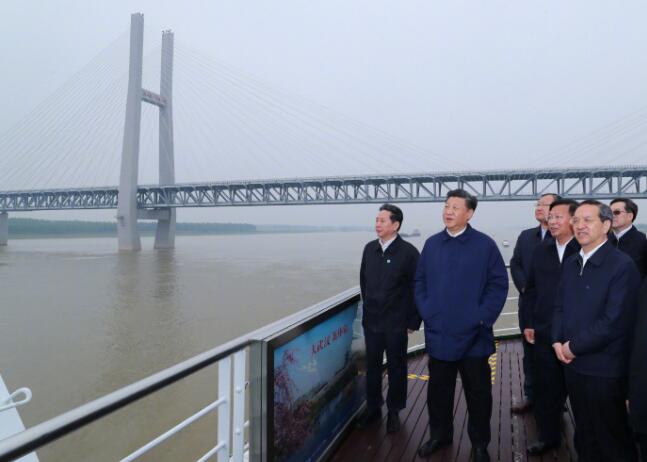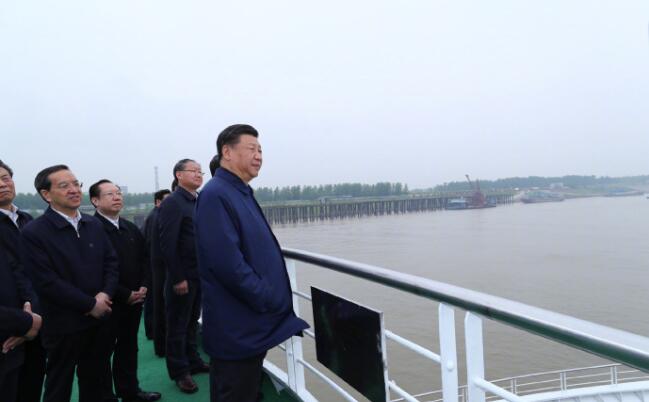 25日上午,习近平总书记驱车一个半小时,从宜昌前往荆州。在荆州港码头登上轮船,顺江而下,察看长江沿岸生态环境和发展建设情况,听取长江航运和航道治理、河势控制和护岸工程、非法码头整治等情况汇报。