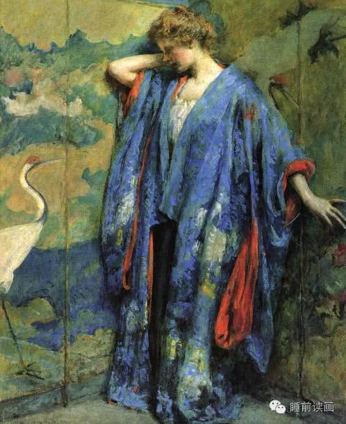 4,Robert Lewis Reid:(1862年7月29日- 1929年12月2日)美國印象派畫家。他出生於馬薩諸塞州的斯托克布裏奇。1884年搬到紐約市,就讀於紐約藝術學生聯盟,1885年到巴黎在琪朱利安學院學習。1889年回到紐約時,主要畫肖像畫,後來成為藝術學生聯盟和庫柏聯盟的一位導師。他大部分作品主題集中在描寫青年婦女。作品往往是非常裝飾,該風格使他成為著名的裝飾壁畫和彩色玻璃外觀設計師。1897年,裏德從美國藝術家協會退出,加入到“十人幫”。1929年12月2日他死於紐約克利夫頓斯普林斯。享年67歲。
