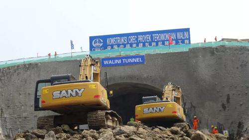 中國中鐵雅萬高鐵項目瓦利尼隧道施工現場。