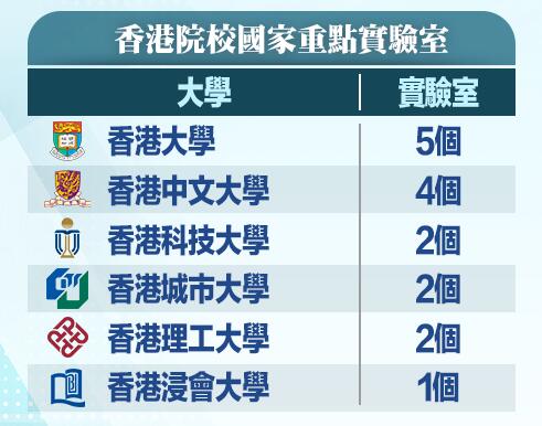 香港有多個國家工程技術研究中心及國家重點實驗室,具有發展創科的良好條件。這些研究中心和實驗室都位於哪些研究機構,一圖告訴你。