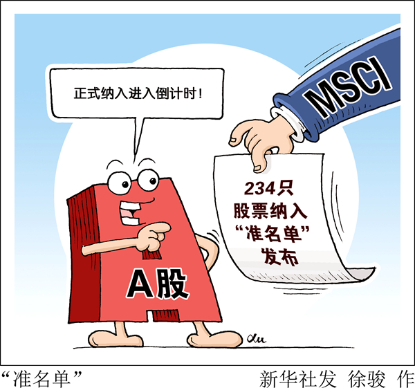 【香港商報网訊】摩根士丹利資本國際公司(MSCI)當地時間14日公布了首批234隻最終將被納入其相關指數的中國A股股票,MSCI將從6月1日起正式把A股納入MSCI新興市場指數,首次納入因子為2.5%。9月3日起將提升納入比例至5%。這意味着,在正式生效之前,全球投資者通過MSCI分享中國經濟增長紅利僅欠納入過程這臨門一腳。