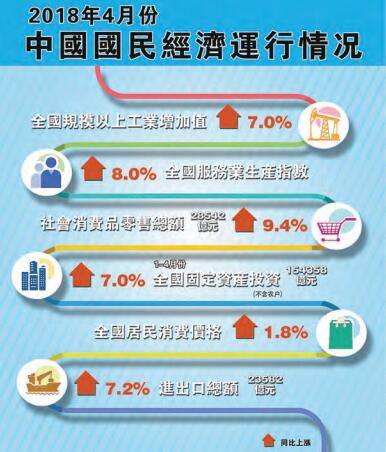 國家統計局昨日公布4月國民經濟運行情况,數據顯示,中國4月規模以上工業增加值同比7%大超預期,但投資、消費、出口數據均出現明顯下滑。分析認為,4月份一些經濟數據和市場預期不一致,2018年經濟下行壓力巨大。交通銀行首席經濟學家連平接受本報記者采訪時稱,中國經濟在今年二、三季度或呈現放緩態勢,全年GDP增速料為6.7%,仍在政府設定的增速目標6.5%以上。香港商報記者 黃鶯