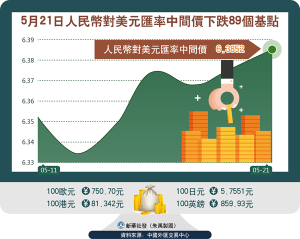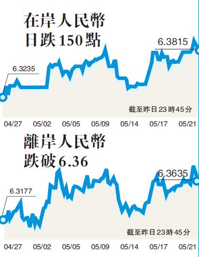 離岸人民幣兌美元跌破6.38關口,日內跌150點。在岸人民幣兌美元跌破6.39關口,日內跌150點。當天,人民幣中間價下調89點,報6.3852元,為1月24日以來新低。