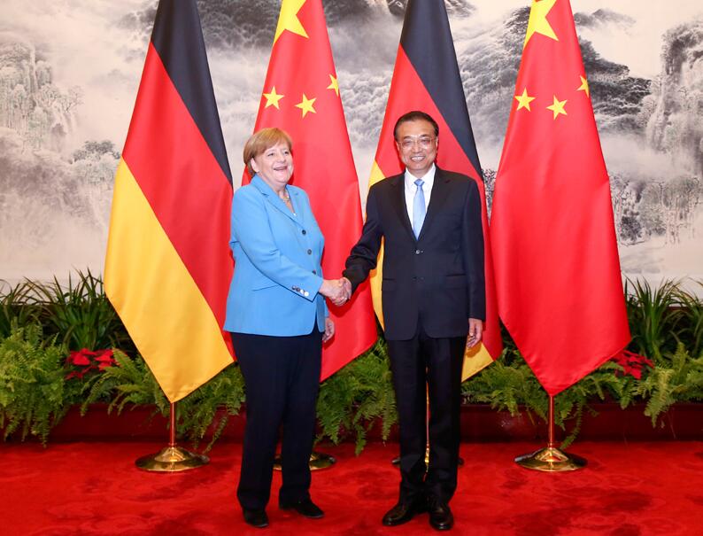 国务院总理李克强5月24日上午在人民大会堂东门外广场举行仪式,欢迎德国总理默克尔对华进行正式访问。欢迎仪式前,李克强同默克尔举行早餐会,就中德、中欧关系以及共同关心的问题深入交换意见。这是默克尔出任德国新一届政府总理后首次访华,也是她作为德国总理第11次访华。