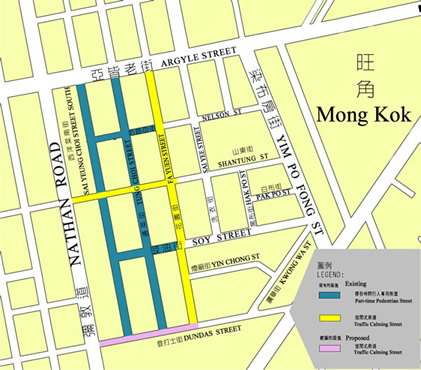 旺角行人專用區位置(左方藍色為西洋菜南街)