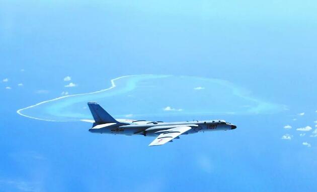 轰-6K飞机在黄岩岛等岛礁附近空域巡航