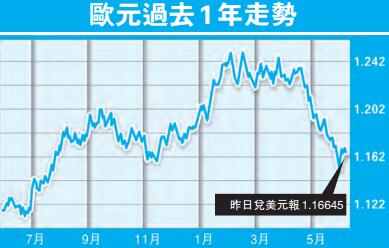 意大利政局危機於上周有所改善,五星運動黨及北方聯盟提名的新政府的總理孔特,終於取得總統馬塔雷拉支持任命,新政府亦於上周五正式宣誓,紓緩了市場擔憂歐洲政局不穩的情緒。另外,5月份歐元區消費物價指數按年升幅加速至1.9%,勝過市場預期,令市場對歐元區經濟步伐放緩的擔憂有所降溫。上周歐元兌美元曾一度跌至1.1510,其後受意大利政局情況轉好及CPI數據帶動,最後收於1.1660。雖然意大利政局的曙光為風險資產提供支持,但眼看目前的環球政經局面,似乎風險事件還陸續有來。