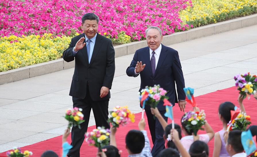 欢迎仪式后,习近平主席在人民大会堂同纳扎尔巴耶夫总统举行会谈。两国元首一致决定,巩固中哈传统友谊,在民族复兴征途上携手前行。