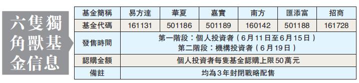 【香港商报网讯】上周,中國證監會火速批准了易方達、南方等6家基金公司申請的戰略配售基金。在剛過去的周末,很多投資者被來自銀行、券商、基金公司的推銷電話、短信「狂轟濫炸」。這6隻獨角獸基金昨日正式發售,從渠道反饋的消息來看,投資者對其極為熱情,僅一上午,最為火爆的一隻基金已經賣出近100億。