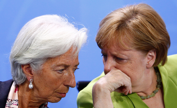 IMF總裁拉加德11日警告,美國貿易保護主義政策很可能會給世界經濟帶來負面影響。圖為拉加德(左)與德國總理默克爾在柏林出席新聞發布會。 路透社