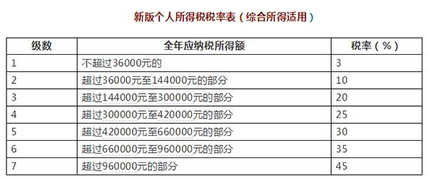 本表所称全年应纳税所得额是指依照本法第六条的规定,居民个人取得综合所得以每一纳税年度收入额减除费用六万元以及专项扣除、专项附加扣除和依法确定的其他扣除后的余额。“起征点”上调,税率结构优化调整,一系列改革动作后,你每月会少缴纳多少钱?一张图看懂↓