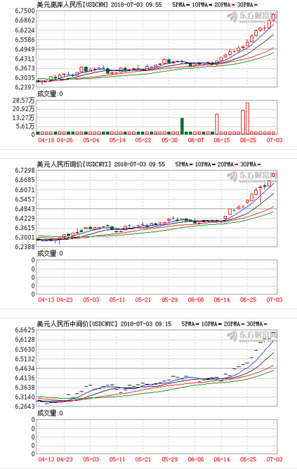 人民币中间价今日大幅下调340点报6.6497,创去年8月25日以来新低。在岸人民币兑美元开盘迅速走低,跌破6.7,一度触及6.71关口,创2017年8月8日以来新低。离岸人民币兑美元跌破6.73,日内跌超400点。机构表示近期人民币走弱的主要原因还是美元指数的强势上涨。
