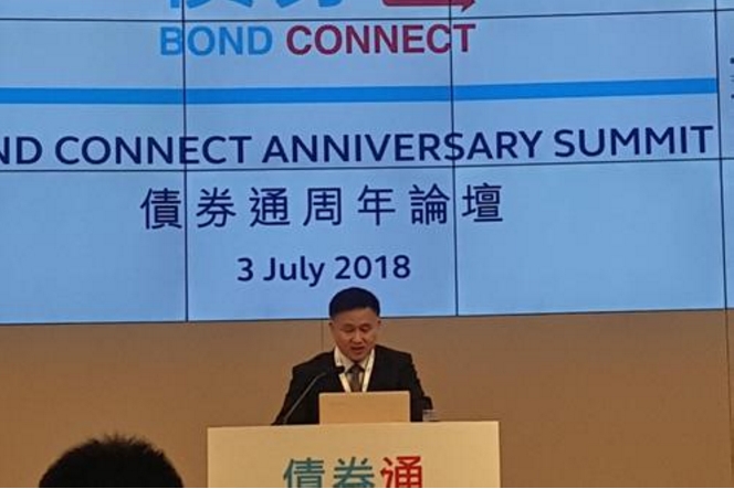 中国人民银行副行长、外汇管理局局长潘功胜出席债券通一周年论坛并讲话。