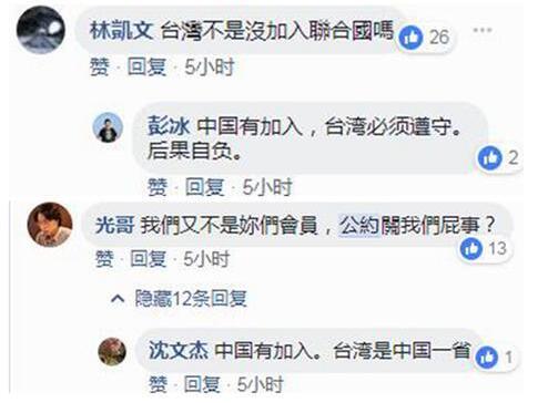 不过有网友指出,因为中国大陆是联合国会员,所以台湾地区必须遵从联合国旗下组织的公约,“台湾是中国一省。”
