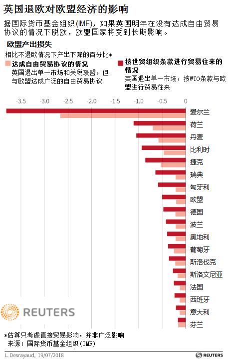 路透在IMF除英国外欧盟今年经济规模估算的基础上计算得出,英国无协议退欧将使欧盟损失大约2,500亿美元的经济产出。