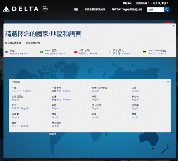 全日空简、繁、英三版页面中有关台湾和港澳的不同表述