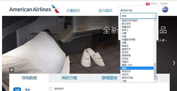 与此同时,虽然美国航空官网将“台湾”的标识删除,但是依然在选择国家和地区一栏,将中国香港与中国并列,并没有标注“中国香港”。
