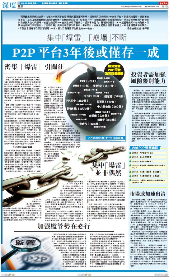 著名財經作家、湛華研究院院長沈陽在接受本報記者採訪時表示,P2P再次密集出事是有多方面原因的,其中包括行業自身發展的不規範和政府對行業管理的不到位,政府本應該更加嚴格審批,但卻輕易放過去。就目前而言,停業及問題平台仍以民營草根平台為主,它們實力較弱,運營能力不足,在運營成本和合規成本不斷上升的情況下無法繼續運營而慘遭「淘汰」。此外,有國資背景的平台也出現問題,這些強調是國資或上市公司背景的平台,起初是為了吸引投資人的眼光,以較低估值出讓部分股份,甚至免費贈送從而換取與國有企業或者上市公司的合作。