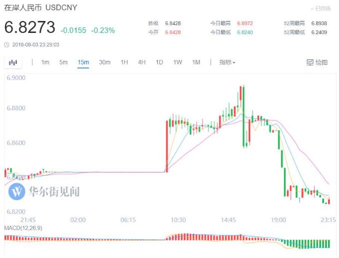 而昨日早前,離岸人民幣兌美元曾失守6.9水平,下午約4時一度貶至6.9127兌1美元,創去年5月上旬以來最低,較日內高位跌約400點子。在岸人民幣曾貶至6.8935兌1美元,為去年5月下旬以來低位。上述央行消息传出后,在岸人民币收复6.85、6.84、6.83三道关口,涨超200点。到23点30分,在岸人民币兑美元夜盘收报6.8236元,较前一日夜盘涨204点。