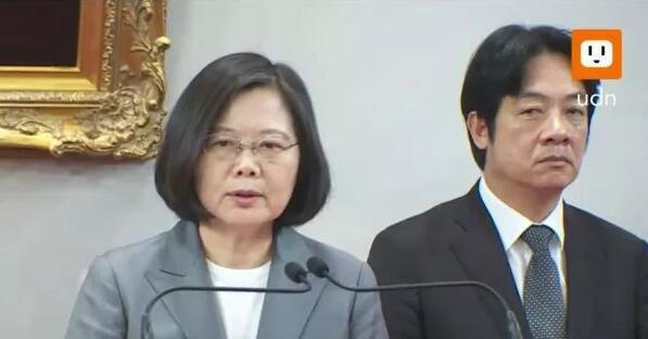 ▲台当局行政管理机构负责人赖清德(右)中午陪同蔡英文(左)举行记者会。(图片来自台媒)