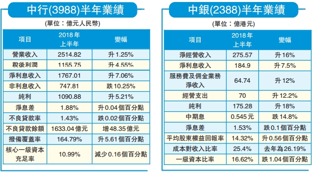 另外,中銀香港(2388)昨亦公布中期業績,截至6月底股東應佔溢利175.28億元,按年增長0.24%。撇除2017年出售集友帶來的收益25.89億元,上半年持續經營業務溢利升17.66%。每股盈利1.6578元,中期股息派0.545元。
