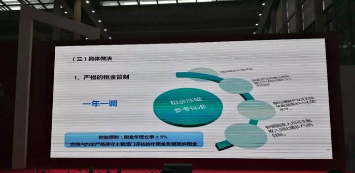 1、严格的租金管制。目前还没有比较完善、全面的对区域的租金指导价格,对于具体项目,会请房地产评估中心采用市场评估的方法,对起始租金进行评估,实现一房一价,对租金有一个定位,不会高于周边同类同品质市场商品房租金价格水平,甚至会略低。一年一调,每年年末对掌握的房源租金涨幅进行调整,因为不可能涨幅永远保持不变,涨幅调整的参考标准会根据当前的市场发展形势以及周边租金价格、CPI增长速度、人均可支配收入增长率等综合考虑,目前提出的控制原则是年租金增长率不超过正负5%,从而保持市场的平稳。国务院委托王锋博士的课题组在做全国房地产监测预警体系建设,其中有一项重要指标就是租金年增长率,目前定的幅度是预警线正负5%,这一标准拿过来,一年一调的标准会控制在正负5%以内。同时我们在合同中也会约定要严格遵照主管部门评估的年租金增长幅度缴纳租金。
