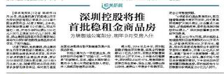 而深圳商报今日则刊发题为《深圳控股将推首批稳租金商品房》的报道指,深业集团在西丽开发的塘朗城公寓将作为深圳首批稳租金商品房试点项目,于明年推出。