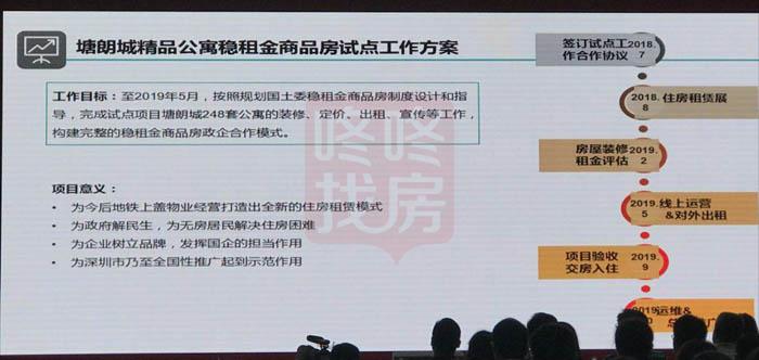 项目目前在装修阶段,预计明年3、4月份对其进行租金评估,4、5月份推出在线租房,希望通过政企合作的模式达到互惠互利的作用,特别是地铁上盖物业,除了有一部分作为保障房,还希望有一些自持可以全面铺开,达到全新的住房租赁模式,因为它势必影响到周边的辐射影响,尤其是全面铺开之后对深圳市其他片区,包括对全国的推广也会起到示范作用。