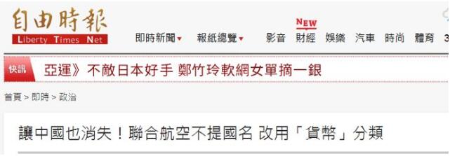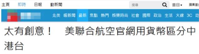 该报宣称,“中国民航局先前针对全球各大航空业者发布‘一中追杀令’,要求将台湾列为国家或与中国并列者进行更改,包括坚持到最后一刻的美国航空等多数航空公司选择配合,但仍有部分业者出奇招,有网友就发现,美国联合航空的网页上,‘台湾’、‘中国’、‘香港’变成以‘货币’选择所在地”。