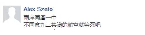 也有岛内网友提醒美联航,两岸同属一中,不认“九二共识”的下场很惨↓