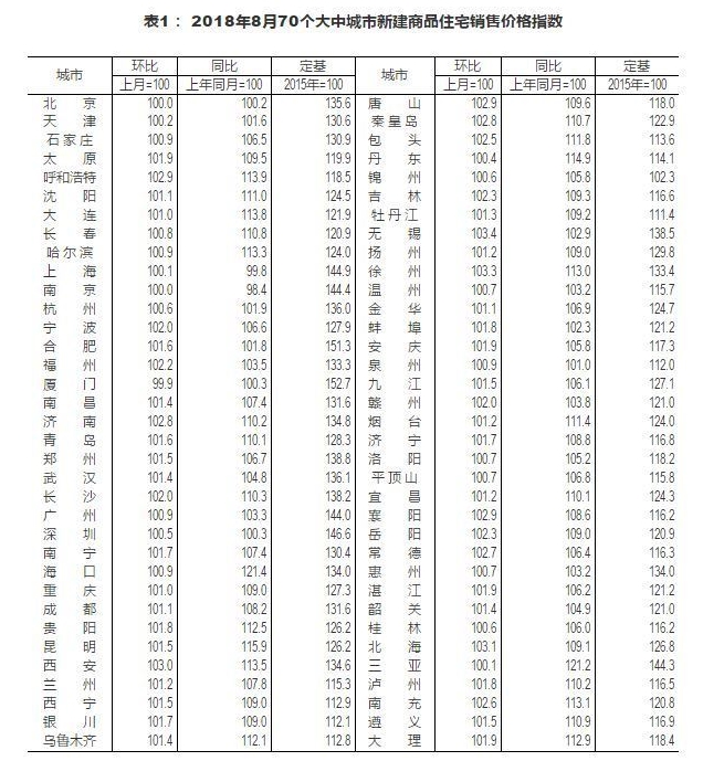 數據顯示,2018年8月,房價普漲。70個大中城市中,新建住宅僅廈門環比微跌0.1%,南京、北京持平,其餘67個城市房價全部上漲。