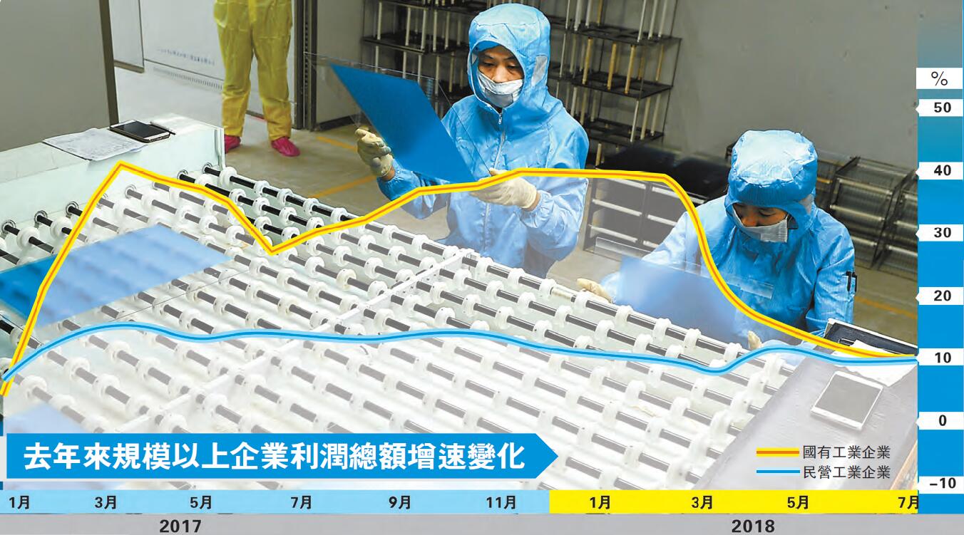 在中國改革開放40年的進程中,民營企業從無到有,從小到大,在各種困難中頑強生長,克服了基礎薄弱和先天不足等劣勢,逐漸發展成為國民經濟的重要組成部分。目前來看,雖然「民營經濟應該退場」的言論不得人心,但外界擔憂民營企業經營狀況不斷惡化的聲音卻此起彼伏,對「國進民退」的憂慮也有增無減。這種憂慮主要體現在,在供給側結構改革的影響下,大力度的行政去產能和環保限產措施,使得上游的產品價格大幅上升,處於中下游的民營企業被動地接受原材料價格上升的局面,成為供給側結構改革的「犧牲品」。而處於上游的國有企業,則得益於原材料價格的上漲,能夠順利扭虧為盈。根據國家統計局的數據,今年前7個月,規模以上工業企業中,國有企業實現利潤總額同比增長30.5%,增速3倍於私營企業。