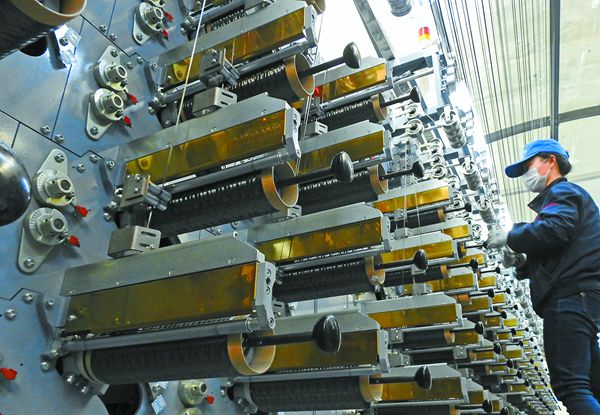 江蘇連雲港市開發區的工人在碳纖維生產線上忙碌。 資料圖片