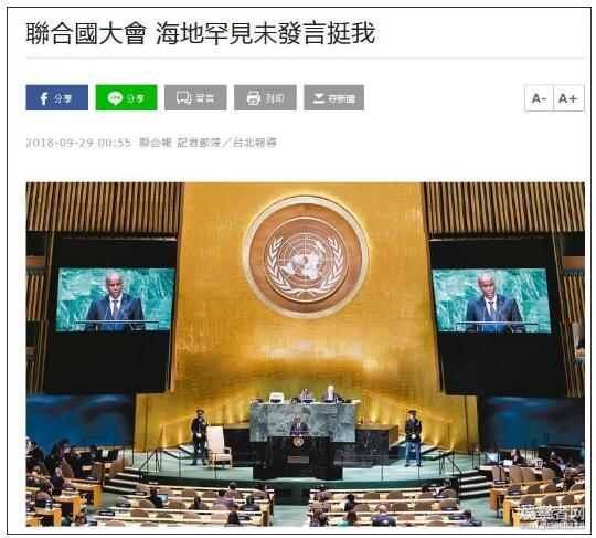 “过去四年都有在联合国大会中替台湾发言的海地,今年发言时则未提台湾。”报道这样写道。