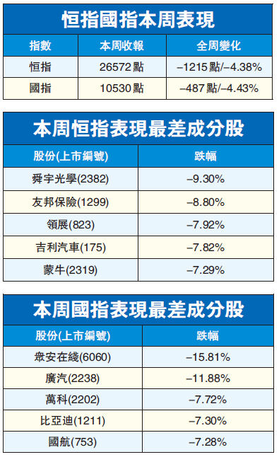 恒指延續前3日跌勢,昨日低開120.12點,報26503.75點,最多跌250點見26373.46點,惟收市時跌幅收窄,報26572.57點,全日跌51.3點或0.19%,成交768.26億元。計及昨日,港股4日內已累跌1215點或4.38%,國企指數本周亦累跌487點或4.43%。昨日是A股復市前的最後一個交易日,下周一港股能否反彈,或將受到A股復市影響。