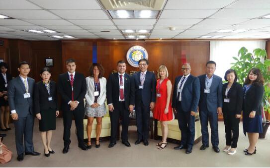 台“移民署长”杨家骏(右六)与巴拉圭移民局长朱利安(左五)等人合影