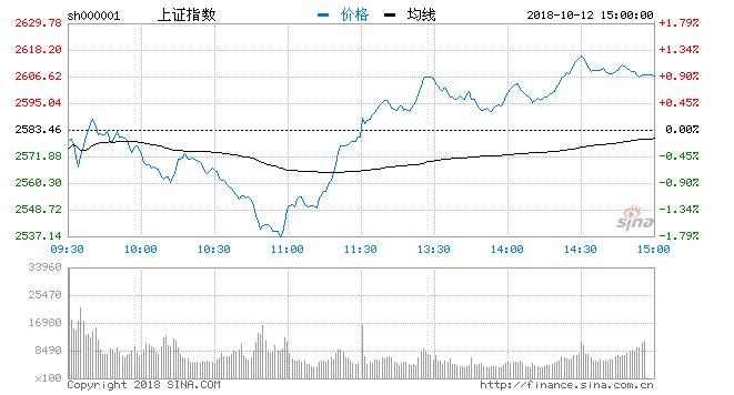 10月12日消息,今日两市再度小幅低开,开盘后震荡走低,盘中三大指数再创调整新低,之后随着银行等板块的强势崛起,市场做多氛围好转,逐步展开反弹,三大指数先后翻红,沪指重回2600点,上证50大涨超2%。截止收盘,沪指报2606.91点,涨幅0.91%,深成指报7558.28点,涨幅0.45%;创指报1268.41点,涨幅0.52%。